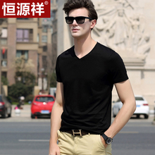 恒源祥新款男士夏款V领短袖T恤纯色休闲装男款夏季体恤衫丝光修身