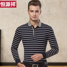 恒源祥春秋薄款中年男士长袖t恤 针织衫春装翻领体恤 条纹长袖男