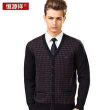 恒源祥羊毛背心 男士毛线背心 男式羊毛马甲 中青年开衫V领毛衣