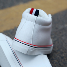 环球秋冬皮面小白鞋女高帮加绒帆布鞋韩版系带学生棉鞋女休闲板鞋