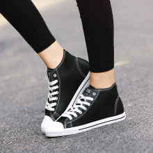 秋季白色PU高帮帆布鞋女厚底松糕鞋 韩版内增高学生鞋时尚布鞋女
