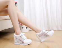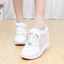 2017春夏新款韩版蕾丝内增高女鞋厚底运动高帮鞋网纱休闲鞋女单鞋