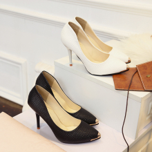 2016春款鞋子单根尖头鞋白色高跟鞋细跟单鞋工作鞋女黑色瓢鞋套脚