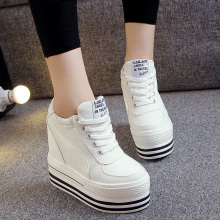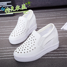2017春新款白色内增高女鞋夏休闲时尚坡跟单鞋厚底高帮鞋女潮