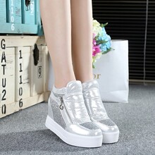 2017春夏新款内增高女鞋休闲高帮鞋女厚底侧拉链单鞋学生鞋运动鞋