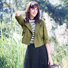 Betu女装七分袖夹克学院风宽松短款风衣外套2017春装新款1701T55