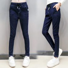 松紧腰牛仔裤女2017春装新款铅笔裤韩版修身大码弹力小脚裤女长裤