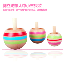 儿童玩具 炫彩陀螺 神奇倒立陀螺 木质3只装型 木制玩具传统玩具