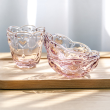 欧式浮雕花瓣玻璃杯 水晶玻璃桃心水杯 甜品酸奶洋酒杯子甜美精致