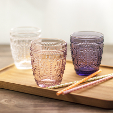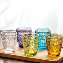 包邮|欧式复古刻花玻璃水杯5支 耐热彩色水晶玻璃 茶杯酒杯果汁杯