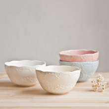 zakka杂货 欧式蝴蝶浮雕陶瓷碗 糖果色蕾丝碗 甜点碗水果碗 饭碗
