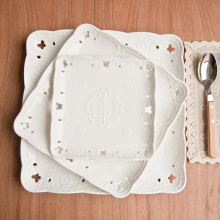 zakka 欧式蕾丝浮雕蝴蝶陶瓷方盘 西餐盘点心盘 下午茶水果盘平盘