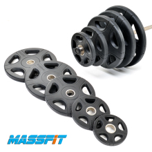 全新五孔黑色包胶杠铃片 奥片 大孔片 massfit马西原装正品