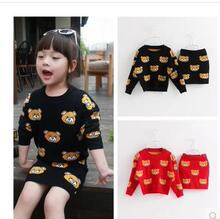 童装2016秋冬新款韩版女童小熊针织毛衣+短裙套装儿童宝宝两件套