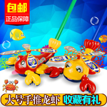 单干手推玩具手推玩具婴幼儿童推推乐响铃龙虾飞机吐舌头拖拉玩具