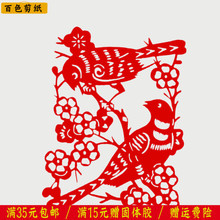 百色传统纸质手工窗花剪纸春鸟踏枝玻璃门窗墙贴纸画装饰镂空作品