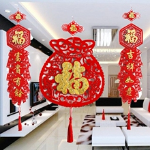 新款客厅房间乔迁挂件春节喜庆加厚毛毡镂空福字福袋鞭炮挂饰对联