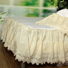 外贸高纱支纯棉床裙 床罩套 精工水溶刺绣花边床裙公主 百搭床裙