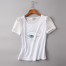 2017夏款 台湾品牌 普力丝 镂空镶珠 减龄 百搭T恤5S2059A