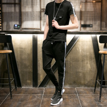 社会小伙套装男精神夏天休闲潮牌2017韩版潮流发型师俩件套男短袖