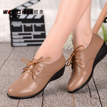 女士春秋季坡跟真皮妈妈鞋中跟中年女鞋子单鞋休闲牛皮鞋中老年鞋