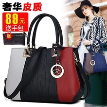 包包女2017新款欧美时尚中年女士包包撞色单肩包斜挎包女手提包