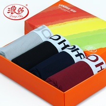 4条装 浪莎男士内裤 男透气平角裤 宽边四角裤大码个性内裤头 潮