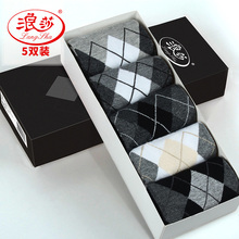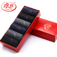 五双礼盒装浪莎男袜子棉质中筒秋袜子男短袜春秋季透气棉袜运动