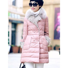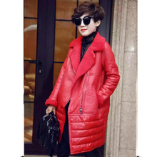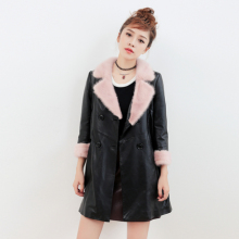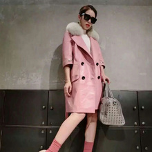 2016秋冬新款欧洲站真皮皮衣女中长款显瘦水貂毛领加棉皮外套