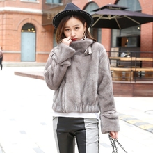 欧洲站2016秋冬新款海宁半高领水貂开衫女士短款修身整貂貂皮外套