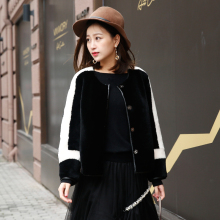 【特价】欧洲站水貂裘皮草外套女整貂圆领短款七分袖短款外套
