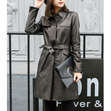 欧洲站2017春季新款绵羊皮中长款真皮皮衣女复合皮风衣修身外套