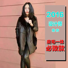 欧洲站2016冬季皮毛一体外套女中长款修身海宁真皮长袖皮草大衣潮