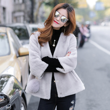 【特】2016冬季新品美利奴皮毛一体女狐狸毛球短款羊羔毛皮草大衣