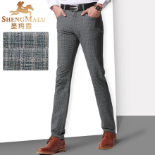 圣玛露2017春夏季男士商务休闲裤男装千鸟格修身中腰小直筒男裤子