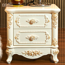 床头柜欧式卧室实木小收纳柜子白色多功能组装迷你简约现代雕花