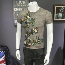 欧洲站男士短袖圆领潮流印花t恤2017夏季新款体恤衫青年修身半袖