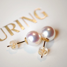 『薇家』镜面日本花珠Akoya海水正圆8-8.5/8.5-9mm珍珠18K耳钉