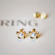 专柜正品小小五瓣花朵日本Akoya天然海水珍珠3.5~4mm耳钉耳饰 特