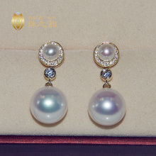 殿堂级天然海水珍珠耳钉18k金双珠耳环大颗极强白亮光正圆无瑕