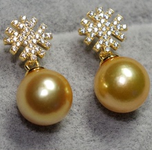 925纯银金南洋金珠耳环 天然海水珍珠耳钉12-13MM无瑕 包邮