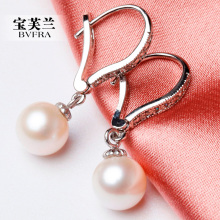 【宝芙兰 正品】淡水养殖珍珠 弯钩圆珠耳环然 925银针 白色 正圆