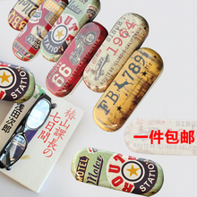 满25元包邮蓝果马口铁盒眼镜盒带眼镜布复古机车徽章收纳铁盒