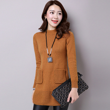 2017春秋新款修身毛衣中长款套头长袖纯色大码圆领打底针织衫女潮