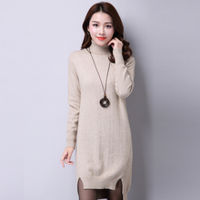 2017秋装新款外套中长款显瘦开叉高领套头毛线衣女针织衫打底衫