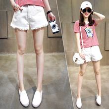秋天的小店春装2017新款休闲毛边白色牛仔短裤夏季热裤女哈伦潮HH