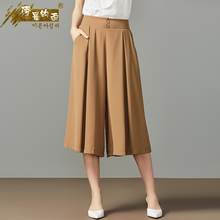 夏季百褶雪纺阔腿裤女松紧腰宽松薄款高腰大脚裤甩裤七分裙裤