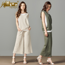 高腰七分阔腿裤女 春夏天新款松紧腰宽松直筒休闲女裤棉麻薄款