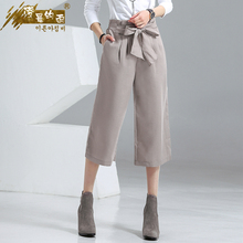 2017夏季雪纺时尚白色阔腿短裤女松紧腰休闲裤宽松显瘦五分裙裤