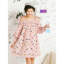 爱爱丸原创宽松一字领连衣裙2017夏新款蝴蝶结露肩灯笼袖吊带裙